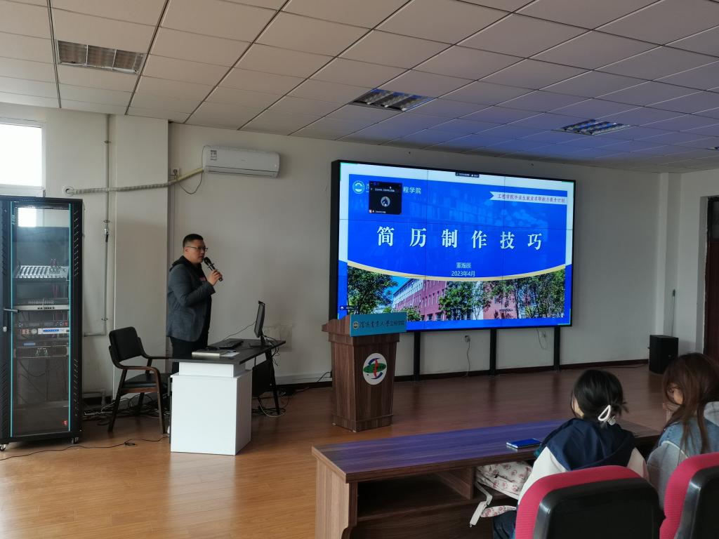 为全面落实党中央、国务院“稳就业”“保就业”的决策部署,扎实推进我院毕业生就业工作,提高毕业生就业意识和综合素养,提升毕业生的求职竞争力,努力推动毕业生更加充分更高质量就业,我院于4月10日中午在501报告厅召开“简历制作技巧培训会”。培训会由研究生辅导员董瀚辰主讲,采用线上线下相结合的方式开展,部分本科生、研究生参与培训会。