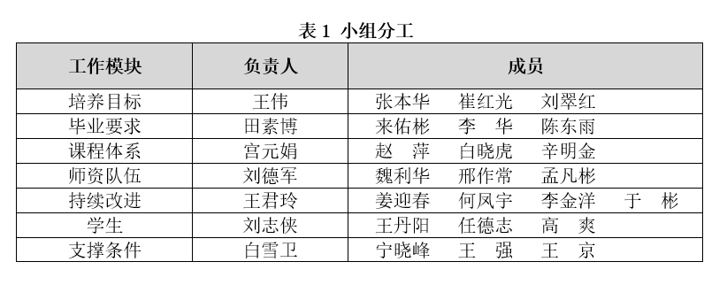 农业机械化及其自动化专业认证工作小组