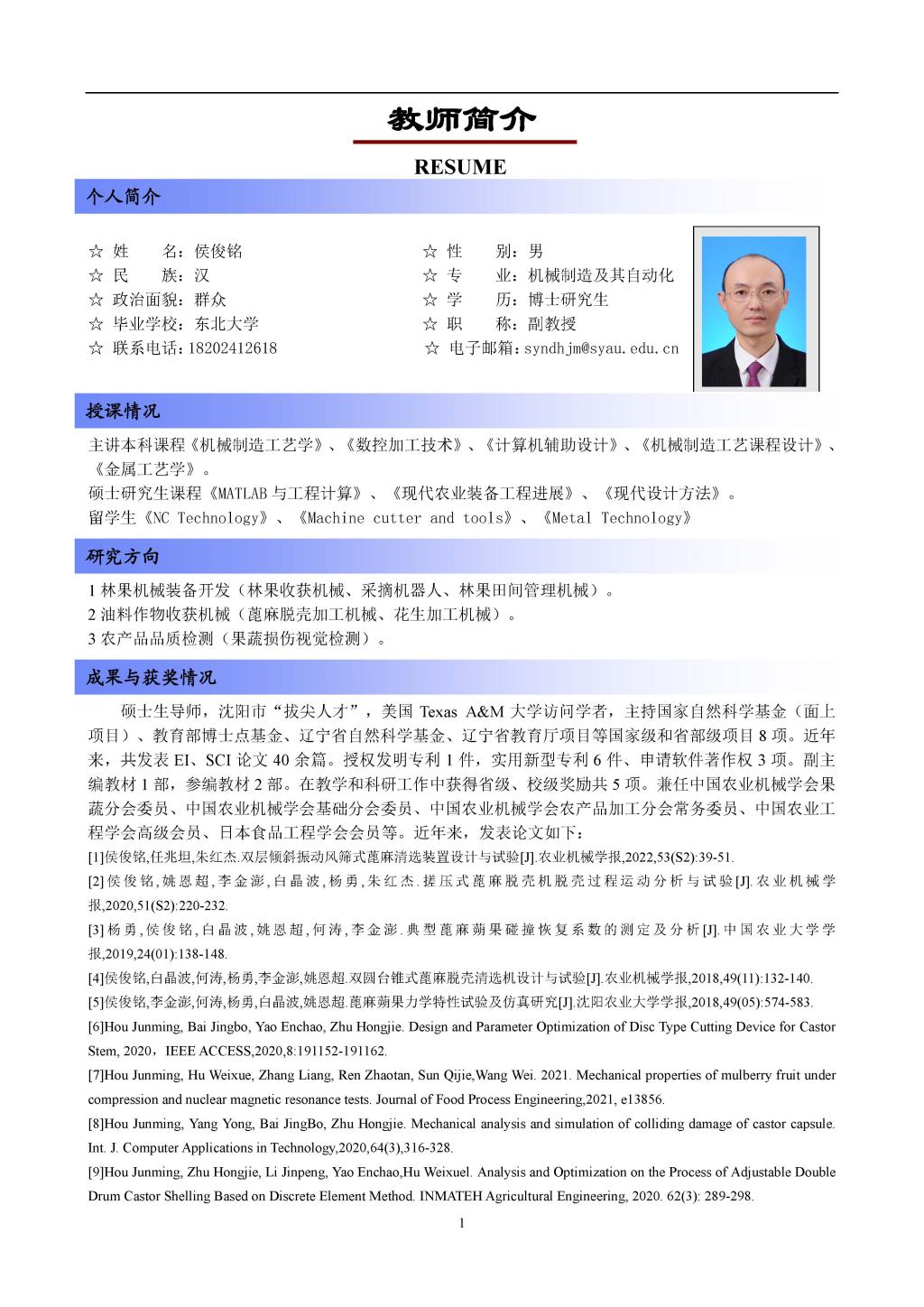 硕士生导师——侯俊铭